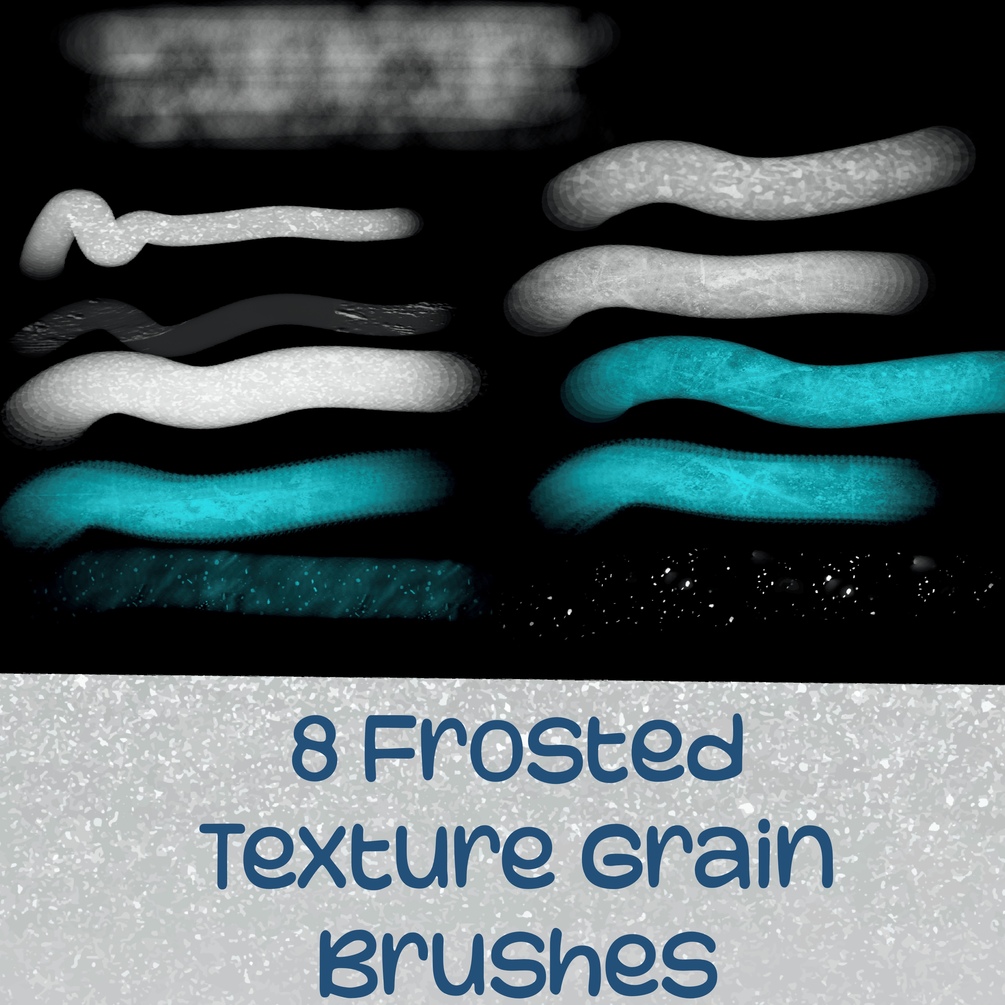 • 8 Frosted Texture Grain Brushes: Create icy, shimmering effects with versatile strokes, from soft frost to bold grain patterns.