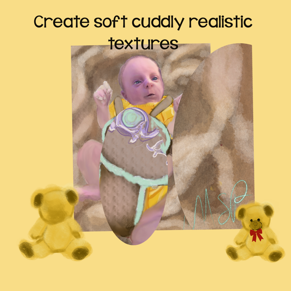 Dive into a world of cuddly creativity with the “Fuzzy-Wuzzy” brush set, featuring 64 luscious, fuzzy, furry, and Minky-soft brushes, plus 12 delightful duo-colored stamps! Perfect for adding rich texture and playful details to your digital art, these tools excel at rendering plush fabrics, cozy blankets, or whimsical characters. This set was born from a personal journey—originally crafted to capture the soft texture of a son’s bouncer and blanket in a painting, blending hyper-realistic depth with a touch of fun.