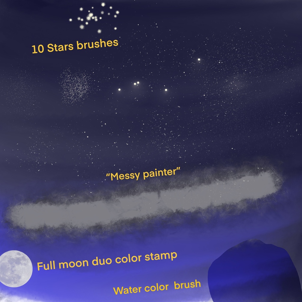 • 10 Star Brushes: Sprinkle twinkling stars, from clusters to sparkles.